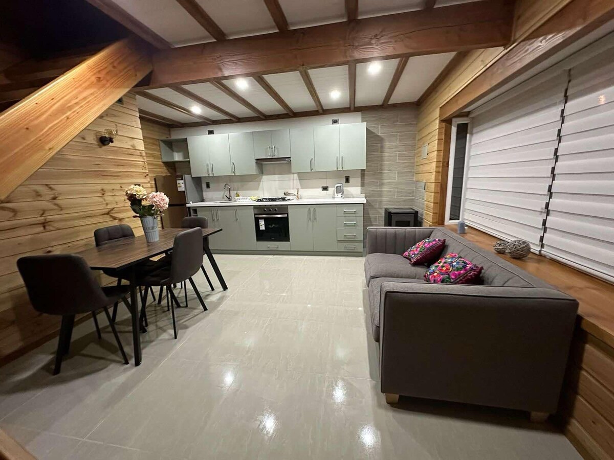 Vi tilbyr en hytte laget av lokalt treverk, den har god varmeisolasjon for vinter- og sommersesongene, hytta er fullt utstyrt og omgitt av grønne områder, gratis privat parkering og god beliggenhet for turistformål.