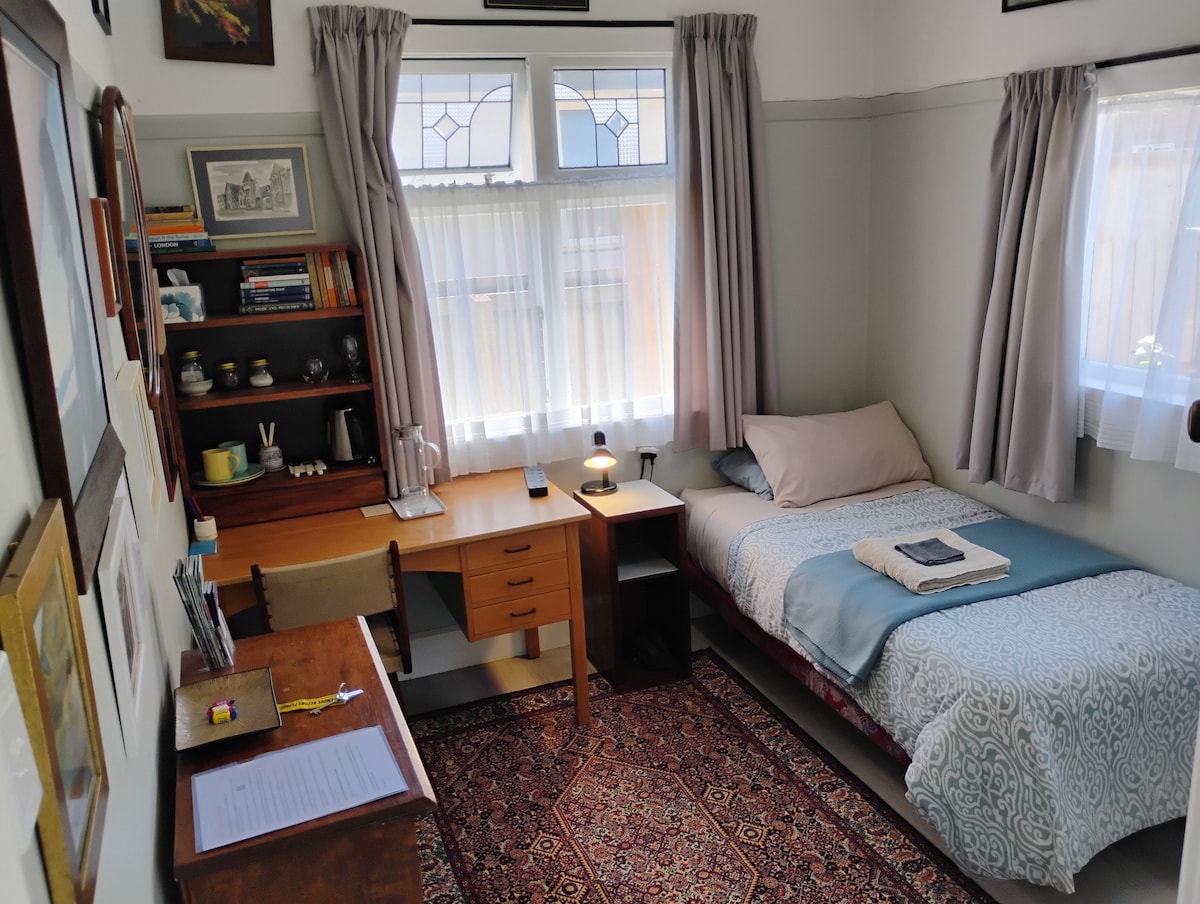 Slapp av på dette selvstendige, rolige, elegante stedet. Alt du trenger er tilgjengelig for et kort eller langt opphold. Helt selvstendig. Stort soverom med en queensize-seng og en sovesofa i stuen ved behov. Det er veldig stille og solfylt med et terrasseområde for utendørs bespisning. Ditt eget bad, te-/kaffefasiliteter og tekjøkken. Inkludert arbeidsplass og sjenerøs stue/spiseplass. Veldig nær flyplassen, universitetet og sentrum med lokale butikker og restauranter ligger bare fem minutters gange unna.