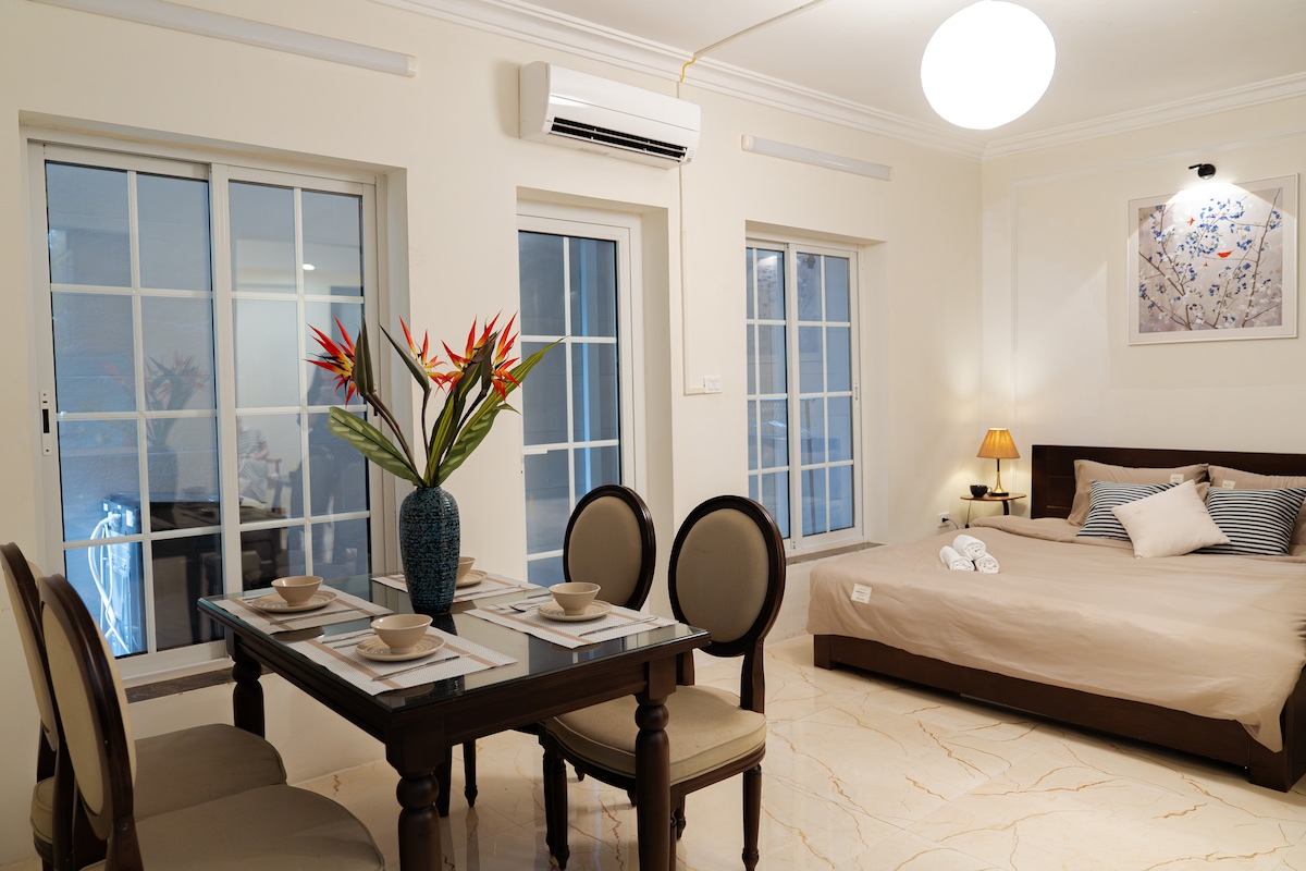 Den stilige boutique-leiligheten vår ligger i et rolig nabolag, i gangavstand til innsjøen, dukketeateret, historisk museum, Beer Street og mange restauranter, og har en fantastisk interiørdesign med lokal kunst og håndverk. Opplev nostalgisk sjarm kombinert med moderne bekvemmeligheter og ultimat privatliv. Leiligheten er fullt utstyrt med kjøkken, VASKEMASKIN, romslig bad, luksuriøse moderne armaturer og en superkomfortabel, stor madrass. Nyt et minneverdig opphold i Hanoi med alle hjemmets bekvemmeligheter.