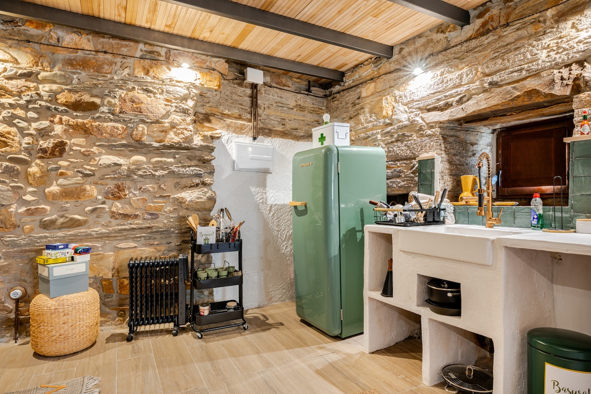 Our MOUNTAIN LOFT is specially designed for couples or couples with children. It stands out for its spacious and comfortable rooms, all with fantastic mountain views. - Living room with fireplace and panoramic views. - Fully equipped kitchen. - Fold-down double bed and sofa bed. - Full bathroom in natural stone. - Heated panoramic porch. - Summer kitchen with barbecue and wood-fired oven. - Natural stone swimming pool with a sunbathing area. - Fountains, gardens, and spacious terraces.