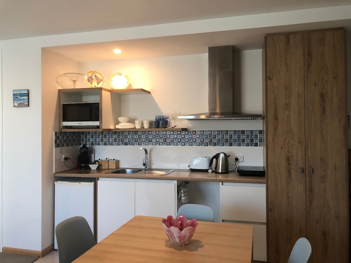 Vakkert studio med aircondition og privat tilgang fra vårt restaurerte luksushjem. Den er frisk, kjølig og frisk hele sommeren og har utsikt over en fantastisk privat og avsidesliggende hage. I kjøligere måneder forvandles den til en koselig og komfortabel bolig. Spaser til den uberørte stranden, som ligger bare 50 skritt unna. Kollektivtransport innen 100 meter og fantastiske fasiliteter i nærheten.