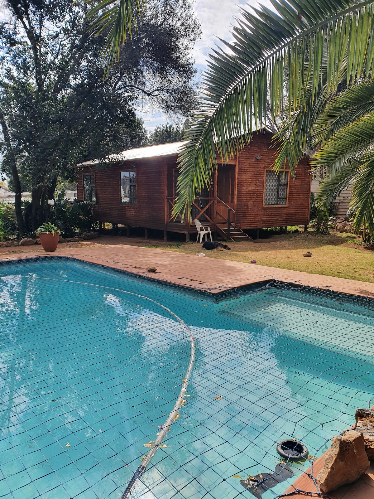 Denne sentral beliggenhet, selvbetjente, frittstående, magiske hytta på fjellsiden, utstråler sjarm og en ånd av eventyr. Den ligger på åsen, og har utsikt over Johannesburgs nordlige forsteder og er plassert i en romslig hage full av botaniske herligheter, fugler og sommerfugler. Dette er et rolig, fredelig område egnet for avslapning eller arbeid fra. Vi har en reserve- og batteristrøm og vannreservoar, så vi har reserver av strøm og vann.