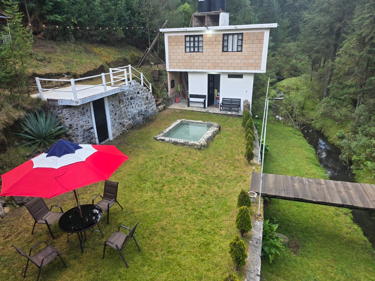 La casa de campo se encuentra ubicada en el poblado de "Senguio, Michoacán". Desconéctate de la ciudad y relájate en las hamacas mientras escuchas la naturaleza, el bosque y el sonido del río. Organiza una fogata y reconecta con tus seres queridos de una forma distinta, más tranquila y cercana. La entrada al parador turístico para visitar a la Mariposa Monarca se encuentra a no más de 10 minutos caminando. La temporada inicia a mediados de noviembre y concluye a principios de marzo.