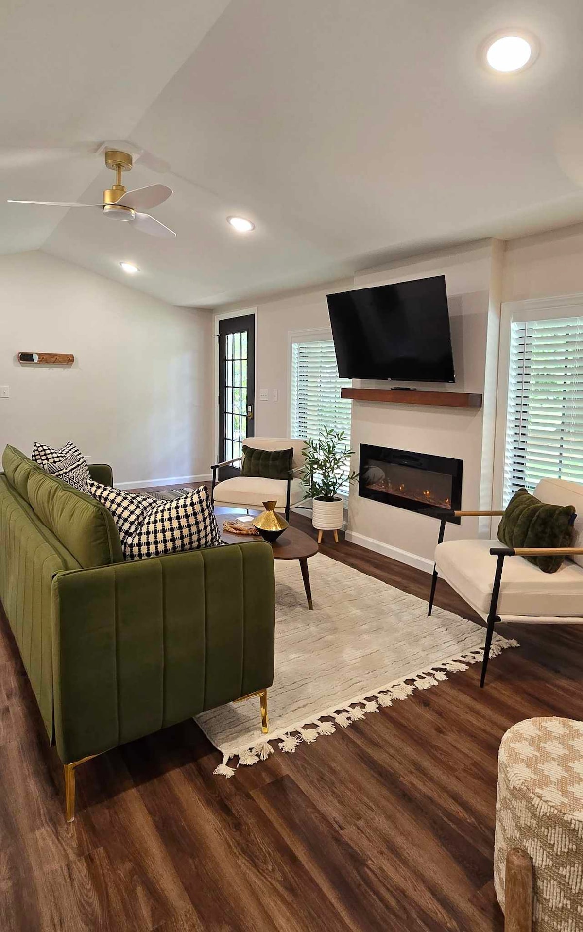 Moro med hele familien i denne nyrenoverte og elegante tre-romsleiligheten med ett bad. Kjøkkenet er fullt utstyrt, mikrobølgeovn, oppvaskmaskin, kaffetrakter og andre små apparater. Rommene har smart-TV-er som du kan bruke til dine egne tjenester, og som allerede er lastet opp for gratis TV-titting. Ute kan du nyte propangrillen og sitte på terrassen på en privat tomt. To dyr er velkomne med et kjæledyrgebyr. Vi overholder retningslinjene for helse og sikkerhet i forbindelse med COVID-19.