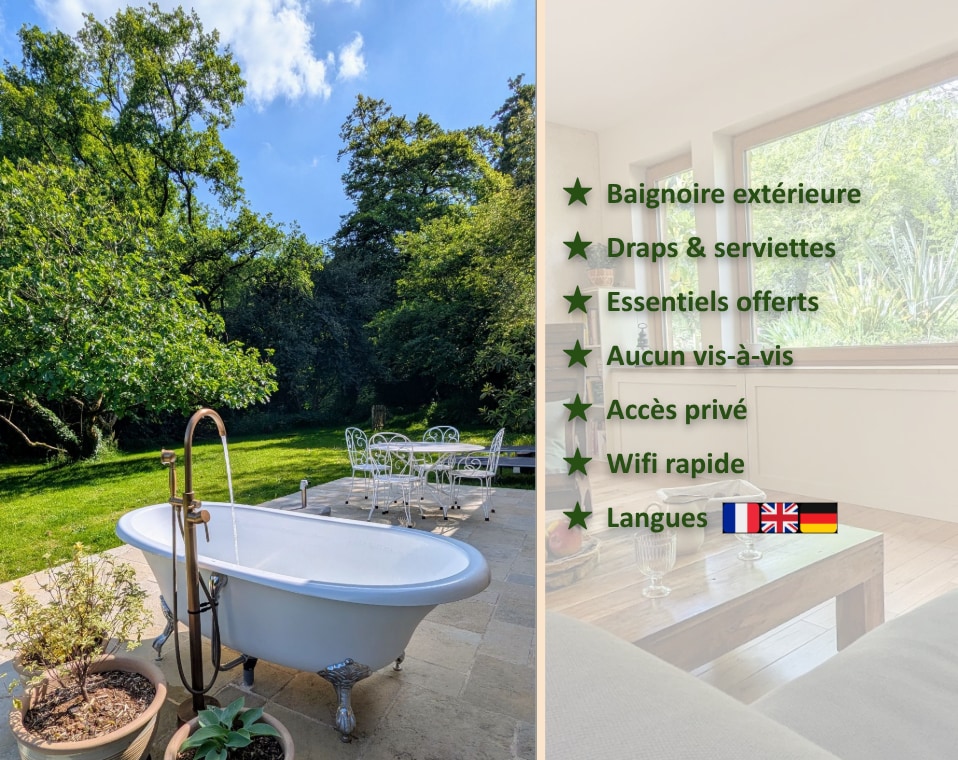 ★ UNIQUE ★ This charming Breton cottage, cozy and renovated by a heritage architect, offers a peaceful setting in the countryside, close to the forest and the seaside. Perfect for nature and stargazing lovers, it features a secluded outdoor bathtub, direct access to a private woodland, and a warm ambiance. Ideal for exploring Brittany and unwinding, this spot combines authentic charm and modern comfort for an unforgettable stay.