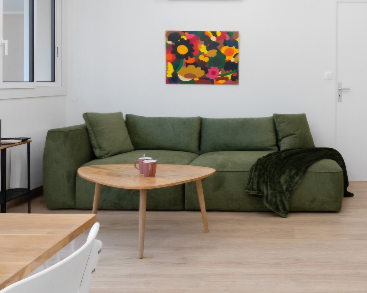 Opplev Toulouse fra en stilig, klimatisert dupleks i hjertet av det pulserende Saint-Cyprien-distriktet. Denne rolige og autentiske boligen er ideell for opptil fire gjester, og den blander historisk sjarm med moderne komfort. Den har et fullt utstyrt kjøkken, trådløst nettverk med høy hastighet og en privat parkeringsplass, noe som er sjeldent i området, som ligger åtte minutters gange unna. Nyt landsbystemningen med enkel tilgang til T-banen, Garonne-elvebredden og byens hovedattraksjoner.