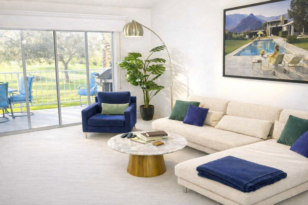 Reis til din private ørkenoase – hvor solskinn, palmer og fredelig utsikt over golfbanen skaper den perfekte ferien i Indio. 💦 Saltvannsbasseng og gratis oppvarming av spa 🎮 Spillrom: biljardbord, bordtennis, arkade og smart-TV 🛏️ 10 sengeplasser: 2 kingsize-senger, 1 queensize-seng, queensize-seng + køyeseng 🍳 Kokkens kjøkken + kaffebar 🔥 Bålplass, grill, utendørs spisestue og lounge 🎾 Tennis, pickleball og treningssenter (fire gjester) 🚗 Nær Indian Wells, La Quinta og Joshua Tree