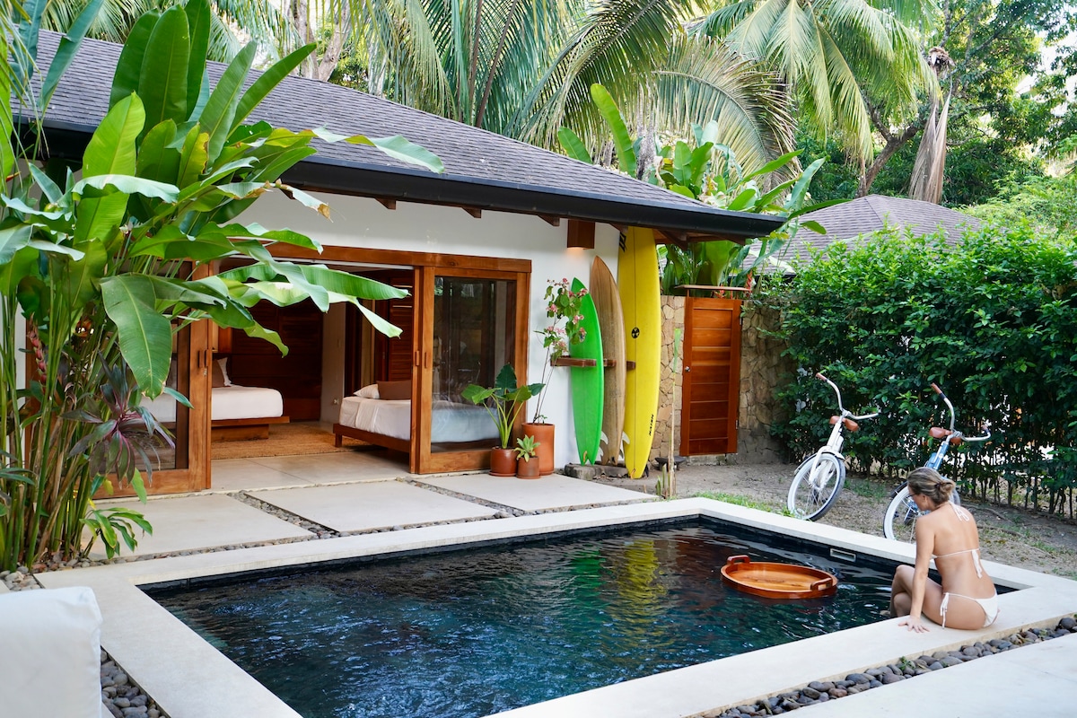 Stedet mitt ligger i nærheten av hjertet av Montezuma. Vakre strender ligger innenfor 10 minutters gange på hver side av villaen, og den berømte Montezuma-fossen ligger bare en kort spasertur opp elven bak oss. Dette er et av de få stedene å leie rett foran havet. Du vil elske stedet mitt på grunn av havutsikten, tidevannsbassenget på eiendommen og den vakre hagen. Villaen min passer for par, aleno-eventyrereisende, familier med barn og bryllupsreisende. Daglig rengjøringstjeneste er inkludert!