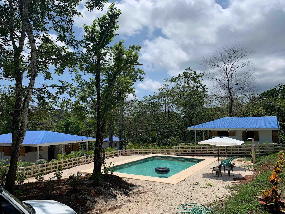 Mellom 180 mangotrær med aper og forskjellige fuglearter ligger dette komplette feriehuset 8 minutters kjøretur fra Santa Teresa og 10 fra Montezuma, i et rolig område. Du vil bo på den trygge to hektar store mangogården med den nederlandske familien på baksiden av sin egen eiendom. Ingen firehjulstrekk! Det er fiberoptisk raskt internett, mye uteplass og privat tilgang til en elv med små fosser. Et supermarked og buss til Santa Teresas surfing og natteliv ligger fire minutters gange unna.