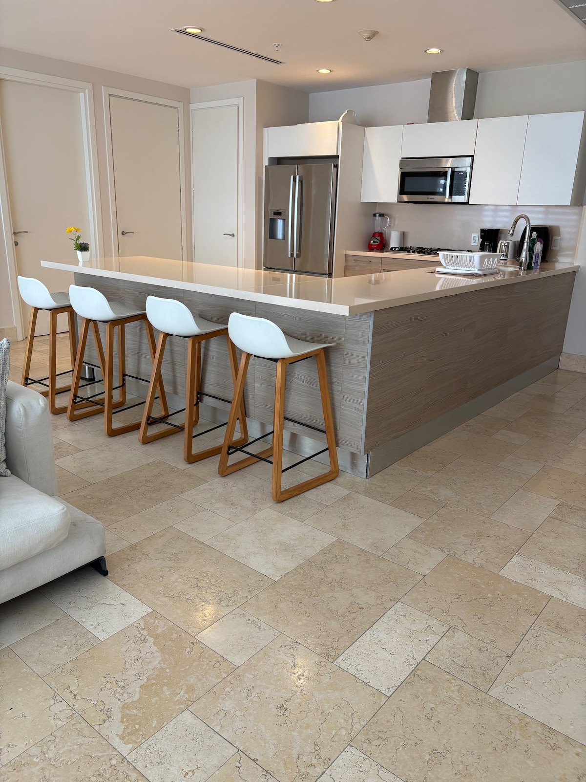 Leiligheten vår er fullt utstyrt, og Renovado er mer komfortabel enn hoteller i nærheten. Kjøkkenet er utstyrt med grunnleggende redskaper for matlaging og kjøleskap. Trådløst nettverk, smart-TV og kabel-TV. Nyt en utmerket utsikt, på et komfortabelt og rolig sted, samt: • Bassengtilgang kun til området med vannsklier. Den kunstige saltvannslagunen er til bruk for eiere og/eller gjester med opphold på 30 dager eller mer. • privat strand Idrettsbaner.