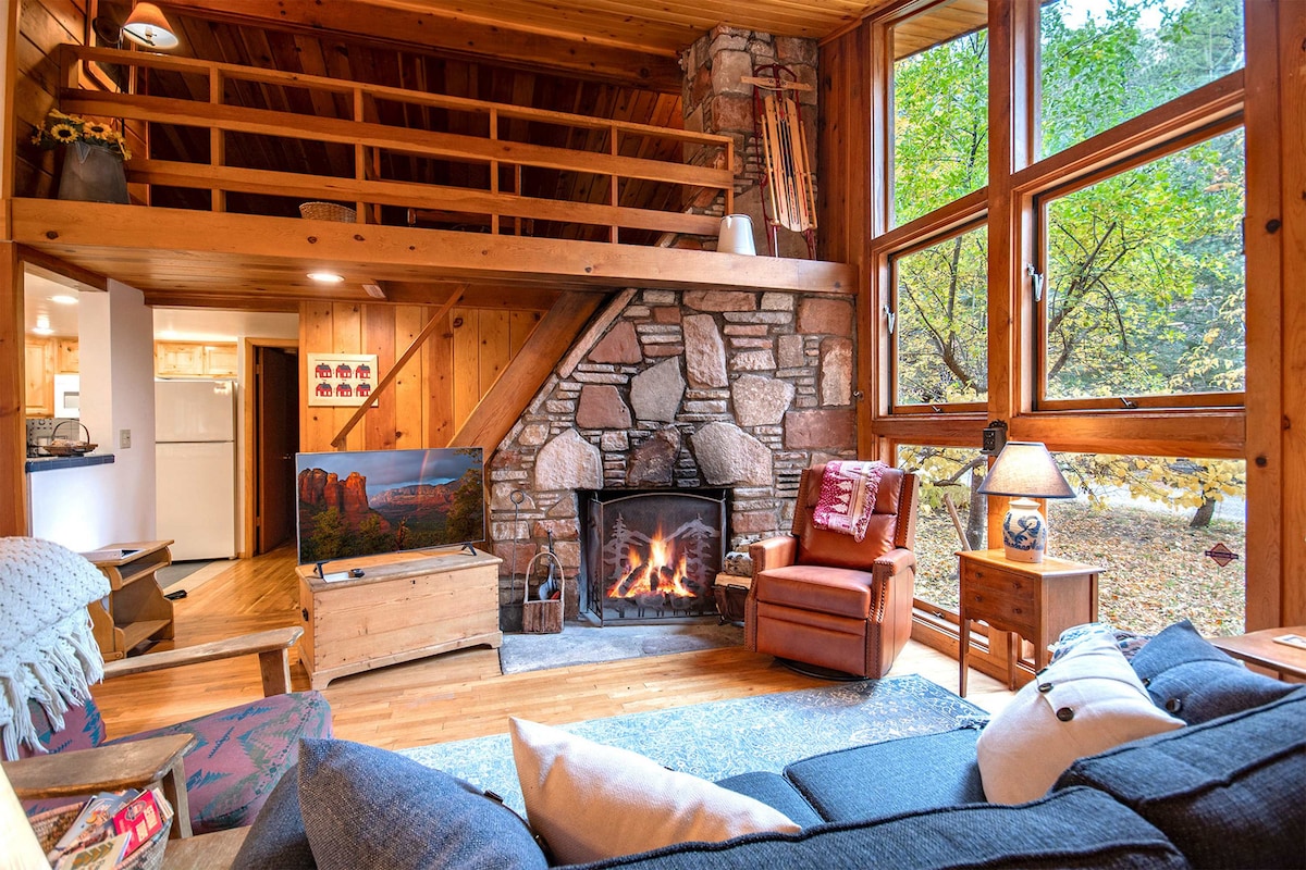 Velkommen til vår rustikke hytteferie i hjertet av Sedonas berømte Oak Creek Canyon! Dette hjemmet ligger bortgjemt i et rolig nabolag og er omgitt av fantastiske fjell, dyreliv og modne Ponderosa-furutrær. En kort spasertur fører deg til den fredelige bekken. Hjemmet vårt har plass til opptil seks voksne, og tilbyr en unik ferieopplevelse for neste ferie, som blander naturens skjønnhet med moderne komfort. Bestill oppholdet ditt og fordyp deg i roen i Sedona!