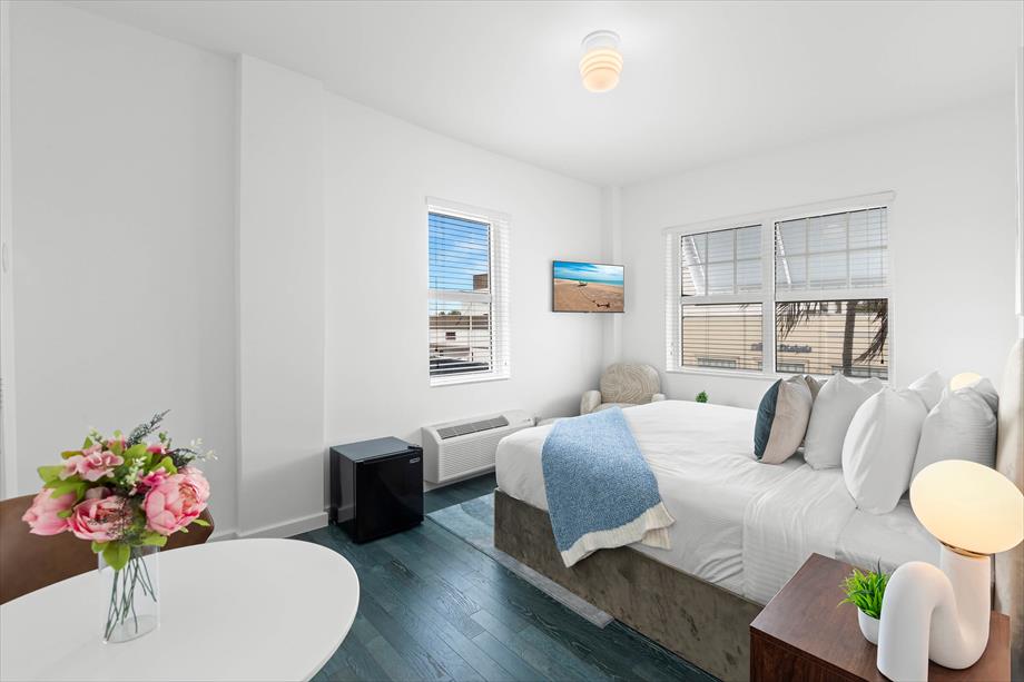 Opplev lokket av vårt ombygde boutiquestudio, gjemt bort i hjertet av pulserende South Beach. Gå gjennom den private inngangen på 7th og Pennsylvania og omfavn den perfekte harmonien av privatliv og bekvemmelighet. Vår oppmerksomme døgnåpne concierge er forpliktet til å sikre din største komfort og tilfredshet, og tilbyr personlige anbefalinger for å forbedre oppholdet ditt. Husk at vinduene våre ikke åpner for sikkerhet!! Denne enheten måler også 300 kvadratfot, noe som er perfekt for et par.
