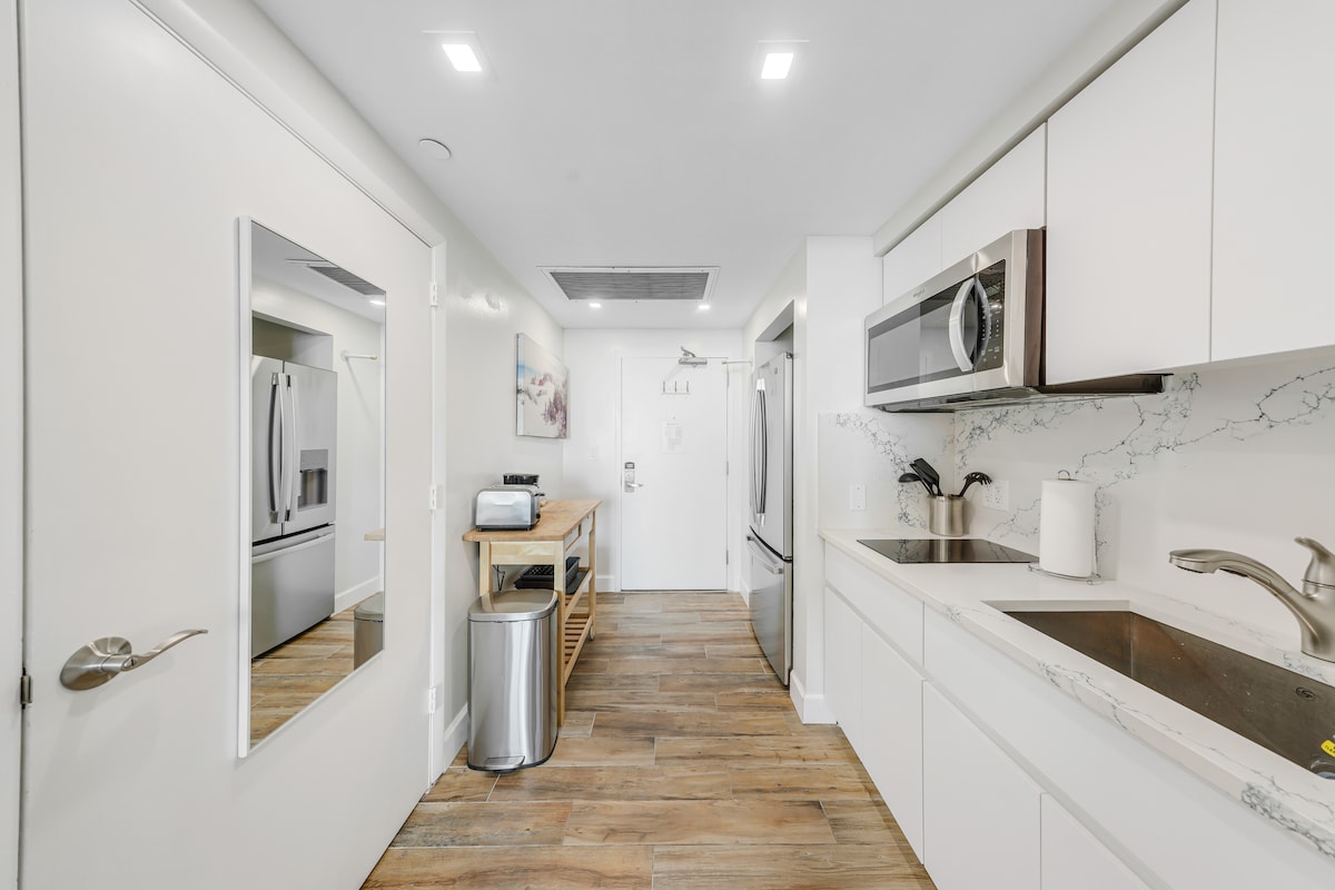 UTROLIG VERDI! For det første vil et gavekort på $ 30 til restauranten vår GreenStreet og en flaske champagne vente på deg på rommet ditt! I Coconut Grove tilbyr denne privateide og renoverte hjørneleiligheten i 17. etasje i en luksuriøs eiendom ved vannet, fantastisk utsikt over byen og bukten. Studioet er veldig romslig og fullt utstyrt for to personer, med fullt kjøkken, kingsize-seng og fullt bad. Nyt alle luksusfasilitetene vi tilbyr, basseng og boblebad med utrolig utsikt over bukten, fullt treningsstudio i toppleiligheten, sikkerhet døgnet rundt.