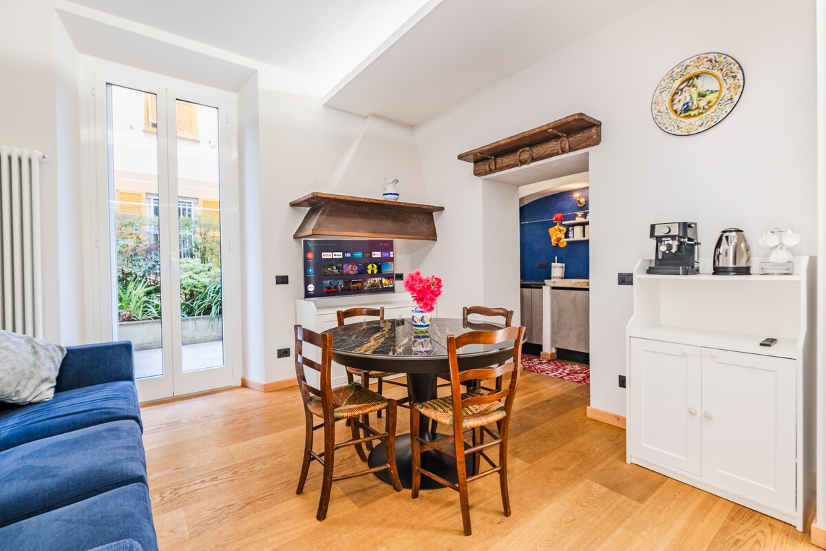 Sjarmerende toppleilighet i hjertet av det historiske sentrum med panoramaterrasse, 5 min. til fots fra sjøen og bare 3 min. fra stasjonen. Wi-Fi-tilkobling og aircondition. Tilbyr gjestene et soverom med dobbeltseng og garderobeskap, kjøkken dekorert med majolika, antikke skjenker og et antikt spisebord, stue med synlige bjelker, peis og studiehjørne. Fantastisk terrasse med utsikt over takene i Chiavari, utstyrt for romantiske middager med levende lys, bad med boblebad.