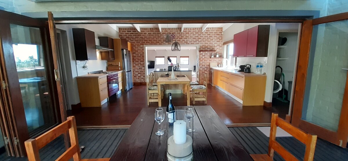 Opplev den ultimate livsstilen ved kysten i vårt luksuriøse hjem på klippetoppen med fantastisk havutsikt fra alle rom. Vår organiske moderne design har naturlig tre og designer myke møbler. Dypp ned i det halvt oppvarmede bassenget vårt, eller nyt yoga- og avslapningsdekket vårt, eller lag et måltid på designer-kjøkkenet vårt. Komplett med solenergisystem og plassert i et privat naturreservat. Bare 25 minutter fra George lufthavn, 15 minutter fra Garden Route Mall og Wilderness. Kom og slapp av i komfort og stil.
