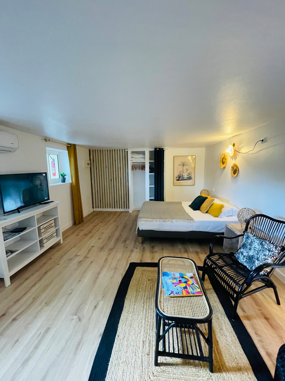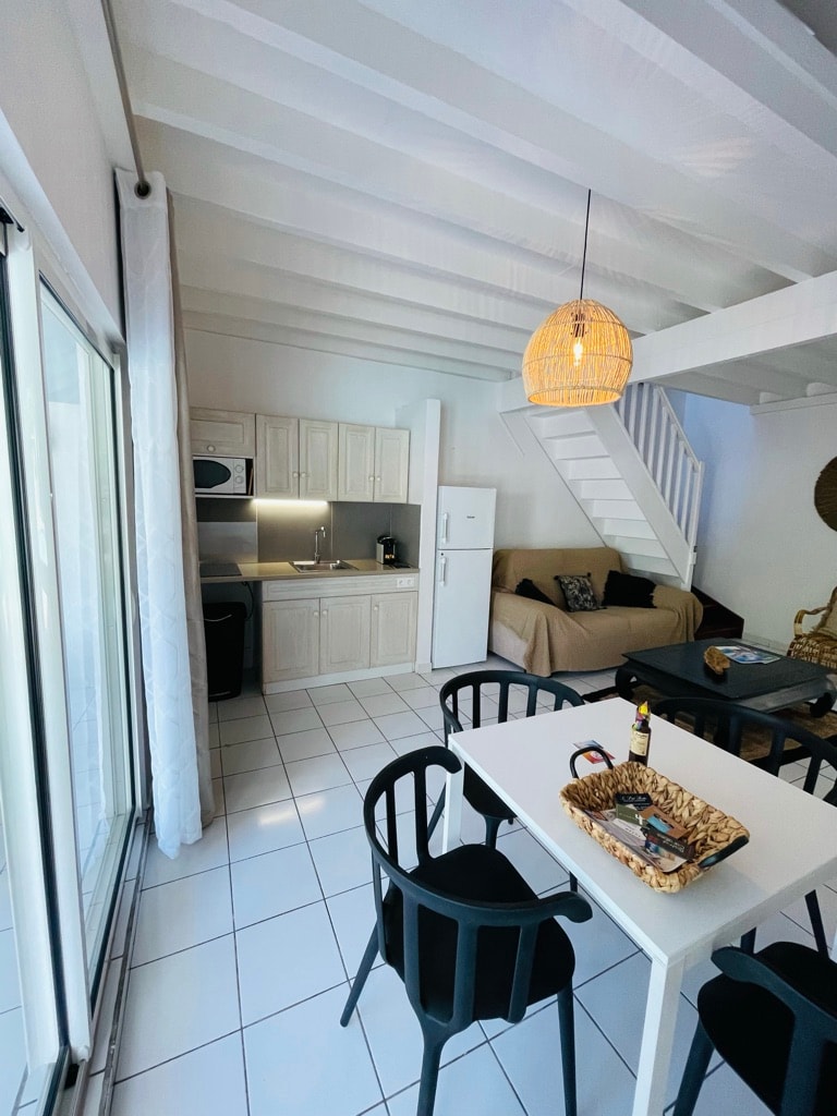 Slapp av på dette rolige og stilige stedet som har alle fasiliteter for deg. Med det vakre svømmebassenget. Høyhastighets internettilgang, 1 soverom med 180 cm seng,et fullt utstyrt kjøkken åpent til stuen med 140 cm sovesofa og klimaanlegg. En av de vakreste strendene på øya ( to minutters kjøretur ) med Marina tilbyr: vannaktiviteter, restauranter, butikker og en nærbutikk syv dager i uken. Et avslappende sted med pétanque og tennisbane, garantert moro