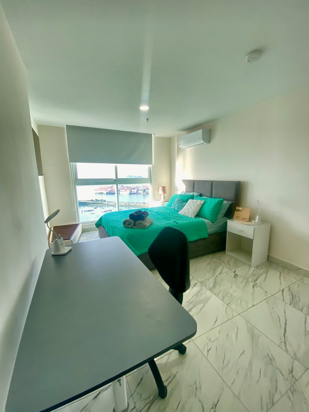 Nyt et komfortabelt og moderne opphold i denne fullt utstyrte studioleiligheten, som ligger i The Sands Apartments & Mall, en av de mest eksklusive bygningene på Avenida Balboa, med utsikt over Coastal Belt og havet. Leiligheten har et moderne design, utmerket utforming og gulv-til-tak-vinduer som gir rikelig med naturlig lys og spektakulær utsikt over havet og byen, noe som skaper en koselig og avslappende atmosfære.