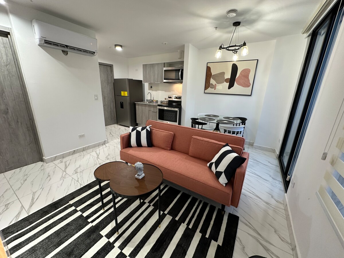 Leilighet designet med hensikt: lys, ren og innredet som et ekte hjem. Hver detalj ble designet for å tilby ekte hvile, som føles som om du kommer hjem. Ideell for reisende på gjennomreise, korte opphold eller arbeid nær Tocumen lufthavn, men det har alt for å installere mange dager på en komfortabel måte. 🍴 Supperutstyrt kjøkken Raskt trådløst nettverk 🛜 for møter 🧹Skinnende rent✨, anmeldelsene våre bekrefter det! 🤩Gjester sier alltid: «Wow, for et fint sted!»