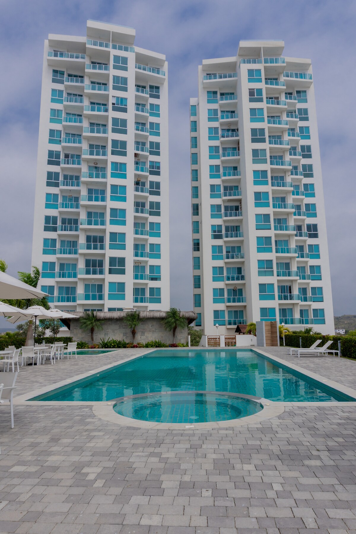 Luksussuite i tredje etasje med havutsikt i Punta Centinela, ideell for alle aldre. Nyt en uforglemmelig opplevelse med førsteklasses fasiliteter: 24/7 sikkerhet, treningsstudio, treningsstudio, grillområde, bassenger, bassenger, bassenger, parkeringsjacuzzi, heis, klimaanlegg, varmt vann, trådløst nettverk, DirecTV, queensize-seng, sovesofa, kjøkken utstyrt med grunnleggende redskaper. Som et spesielt preg, den eksklusive tilgangen til klubben og den private stranden i Punta Centinela. Bestill nå og opplev paradisopplevelsen ved sjøen!