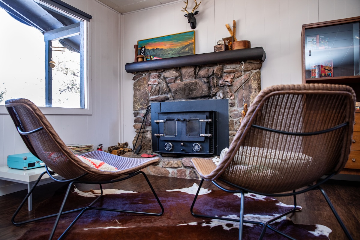 ★ Kingsize-seng (Helix-madrass) + mange koselige tepper. ★ Hund inkludert. ★ 4 private, skogkledde hektar + fjellutsikt ★ Badestamp ★ Vedovn med rikelig med ved og utstyr til å tenne opp ild. ★ 1 time til Colorado Springs, 2 timer til DIA. Denne sjarmerende vintage A-rammen ligger i skogen utenfor en rolig vei, og tilbyr fjellutsikt og naturlig fordypning. Du vil sannsynligvis se flere hjorter, fugler og jordekorn enn andre mennesker, men hvis du ønsker å våge deg ut, er Divide 18 minutter unna!