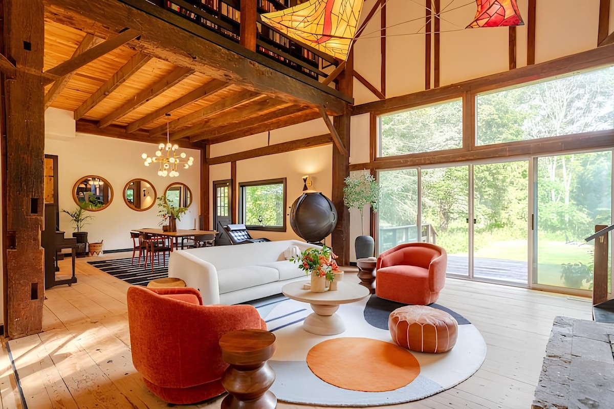 Wake up to sunlight pouring through the tall windows and coffee on the deck overlooking the trees. Just 10 minutes from Rhinebeck, but it feels a world away — mornings are quiet, nights end in the hot tub under the stars. Perfect for long weekends, remote work resets, hiking, and slow Hudson Valley days. Large windows, a bunk room for kids, a hot tub, fireplace, fire pit w/ free wood, EV charging and a cozy large screen tv room. 20 minutes to the train, Red Hook, Rhinebeck, and Hudson.