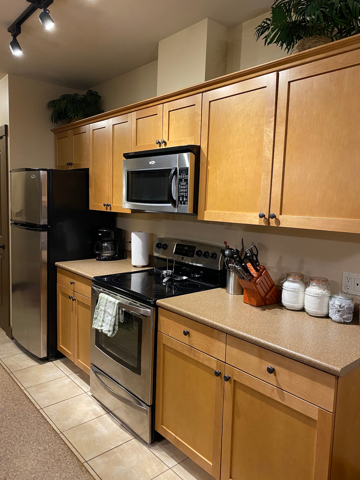 Fjellutflukten din venter! Golden Peak Retreat tilbyr et romslig tosoveroms- og totoromssted designet for komfort og bekvemmelighet. Nyt et komplett kjøkken, vaskemaskin og tørketrommel og en koselig peis for å slappe av etter en dag på Kicking Horse. Det andre soverommet er en låsbar suite, ideell for venner eller familie som reiser sammen – komplett med egen inngang, bad og et minikjøkken (kjøleskap, vask, kaffetrakter, mikrobølgeovn). Begge soverommene har kingsize-senger, så alle sover som kongelige.