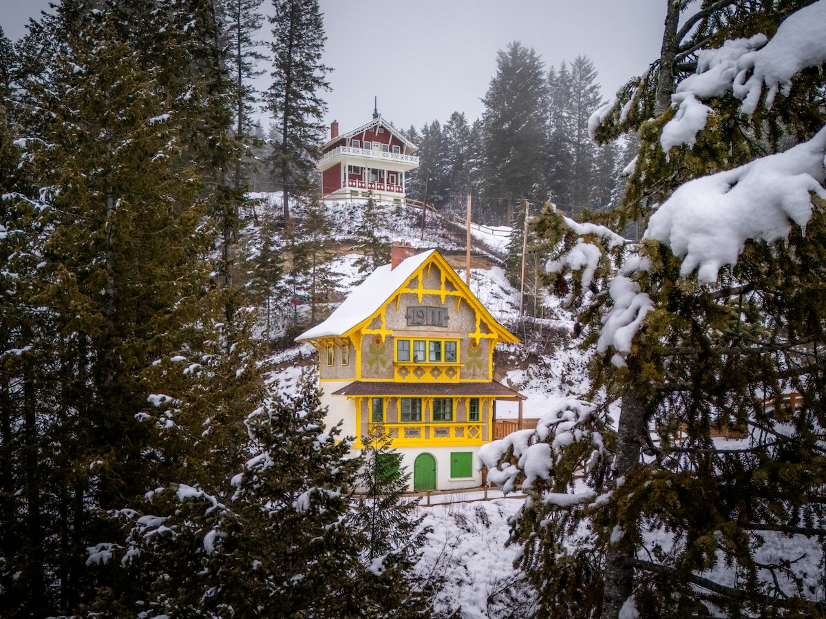 Velkommen til The Kabin – ditt koselige fjellskjul med vidstrakt fjellutsikt! Kabin ligger i den naturskjønne Blaeberry-dalen, bare minutter fra Golden BC og Kicking Horse Mountain Resort, og er den perfekte basen for par, små familier eller venner som søker avslapning og eventyr. Denne vakre tømmerhytta er bygget med omhu av en lokal håndverker, og den blander rustikk sjarm med moderne bekvemmeligheter – inkludert ditt eget private boblebad for en dukkert under stjernehimmelen og fantastisk utsikt over fjellet.