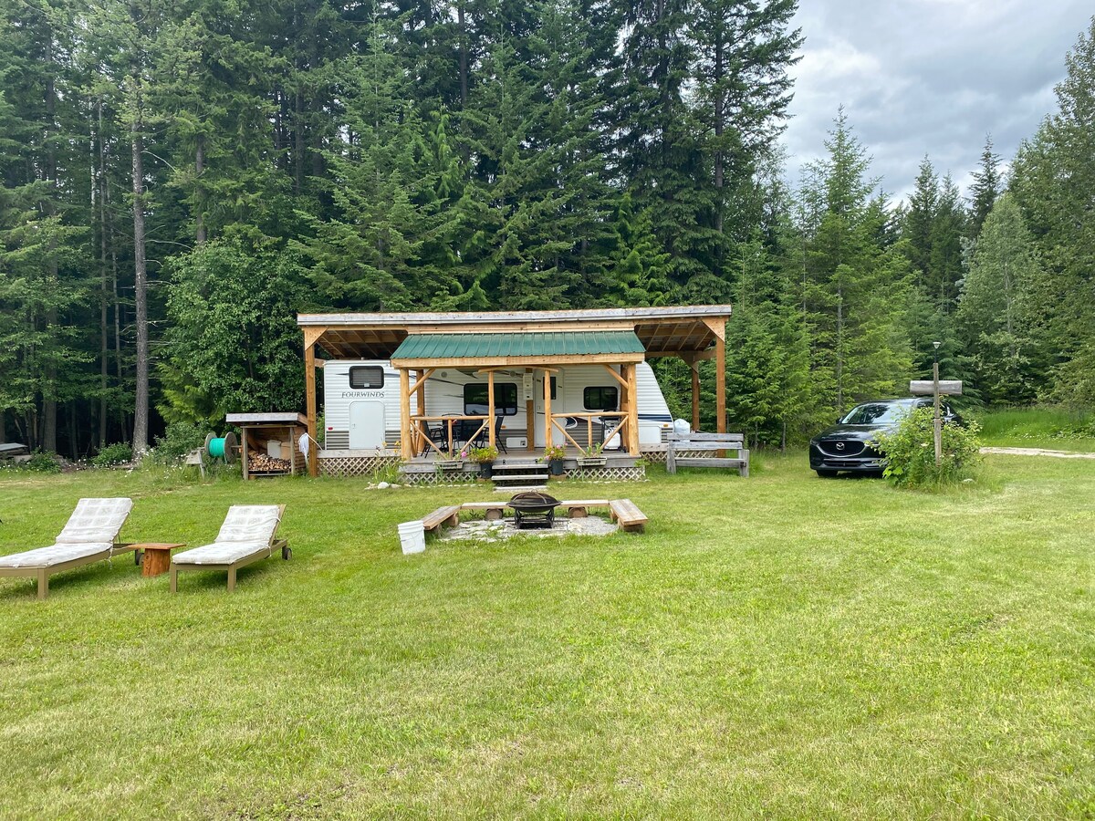 Kom og nyt denne rene, private og romslige fullt betjente campingvognen på 27 fot (vann/strøm/kloakk), som ligger fem km sør for Golden i Habart-nabolaget. Det er en tildekket terrasse med grill og sidebrenner for å nyte utendørs matlaging og holde deg tørr når det regner, mye parkeringsplass og alt du trenger for å tilbringe noen gode tider i byen. I nærheten av tur-/sykkelstier, fotspor til Columbia River er det ingen mangel på aktiviteter i området.