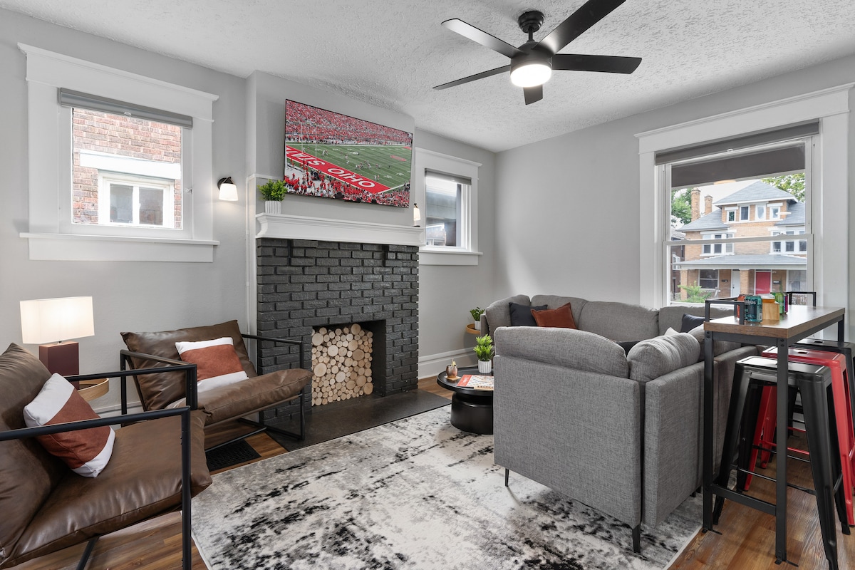 Welcome to Big Blue! 💙 Perfect for large groups and families, this spacious home offers 5 bedrooms, 4.5 bathrooms, and a large open basement (available for groups of 6+ guests). You’ll love the prime location — just a 5-minute walk to the Short North Pint House, Jeni’s Ice Cream, and tons of other local favorites! Additional Details: 🏠 A separate studio apartment is located above the detached garage. 🚗 Enjoy 3 free off-street parking spaces (additional parking may be available for a fee