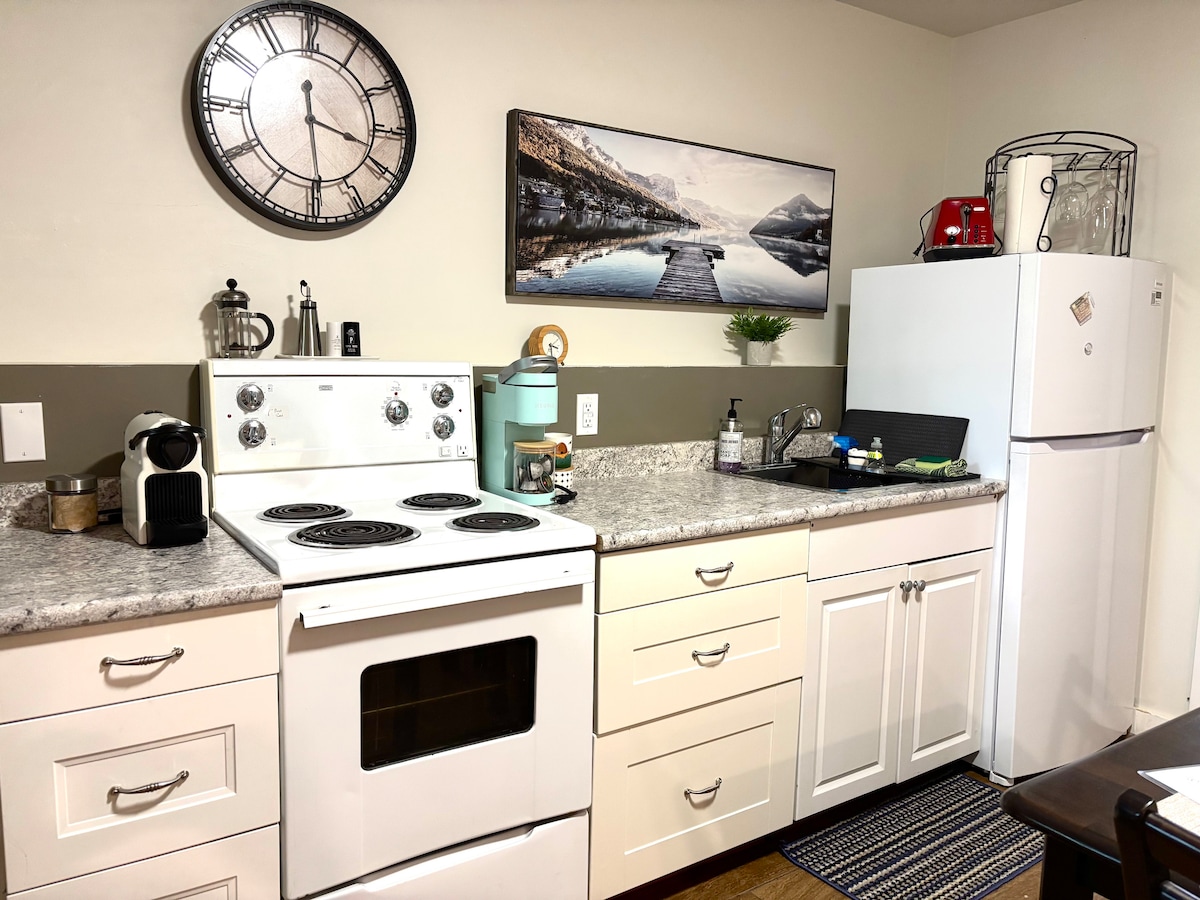 Du får hele nedre etasje i huset vårt i to plan for deg selv – en komplett suite med to soverom, et bad, et fulltjen, spiseplass, romslig stue og uteplass. Vi har alt du trenger for å få et fredelig og avslappende opphold hos oss. Mye innenfor gangavstand. 300 meter til Puntledge-elvens skogsstier, badehull og tubing. Mindre enn én km til Courtenays travle 5th Street med flotte butikker, kaféer, iskrem og dagligvarer.