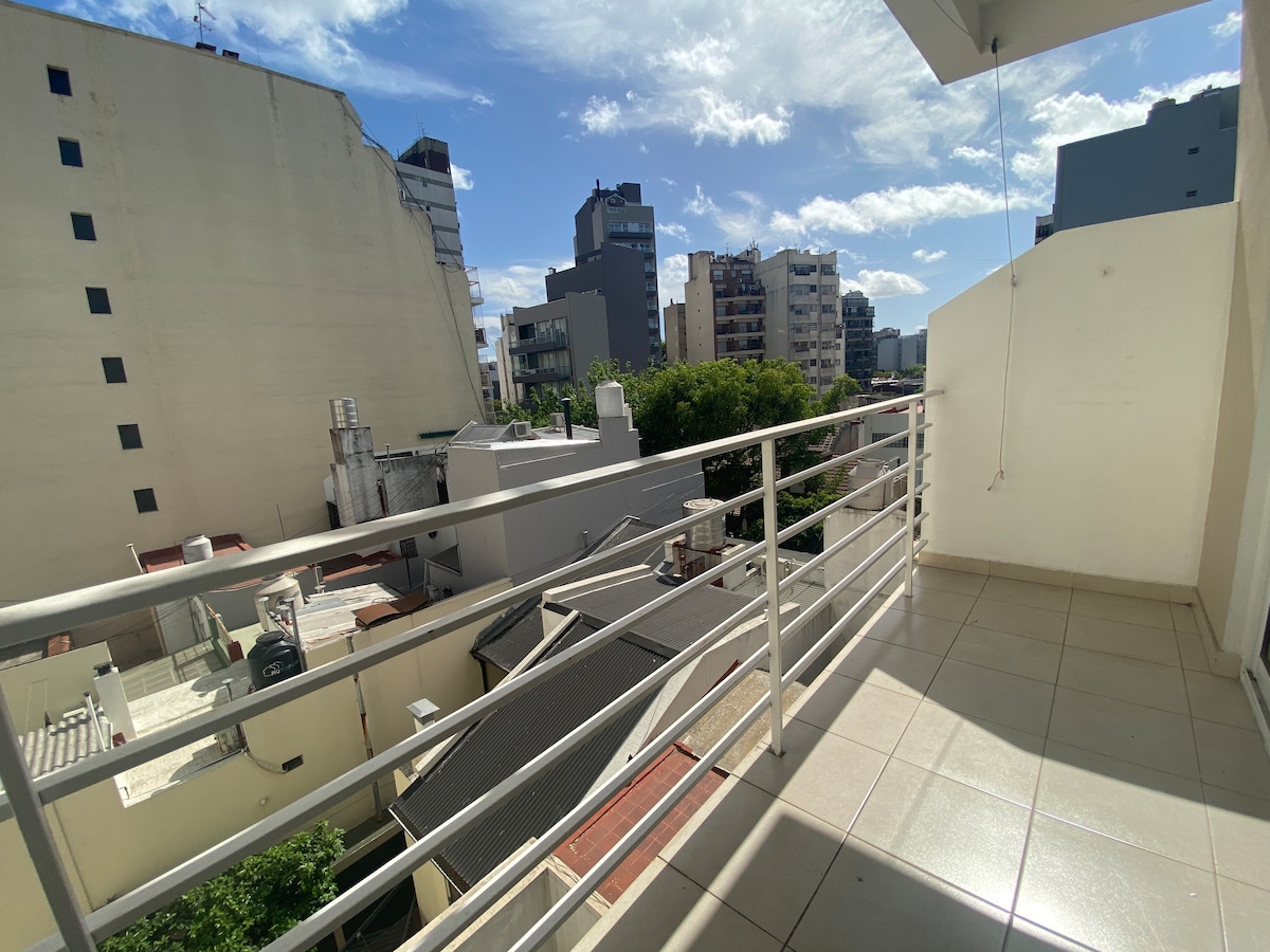 Vakkert studioleilighet i syvende etasje, komfortabelt, fullt utstyrt, med utsikt over Benito Nazar-plassen. Rolig og trygt nabolag, med et bredt utvalg av restauranter og kafeer. Den har alle nødvendige tjenester for å tilbringe det beste oppholdet. Sentralvarme, klimaanlegg, 50-tommers TV, internett, flow, Mubi og Netflix. Svært nær Centenario-parken, Av. Corrientes, Palermo, Movistar Arena, Duran sykehus. Kollektivtransport til alle deler av byen.