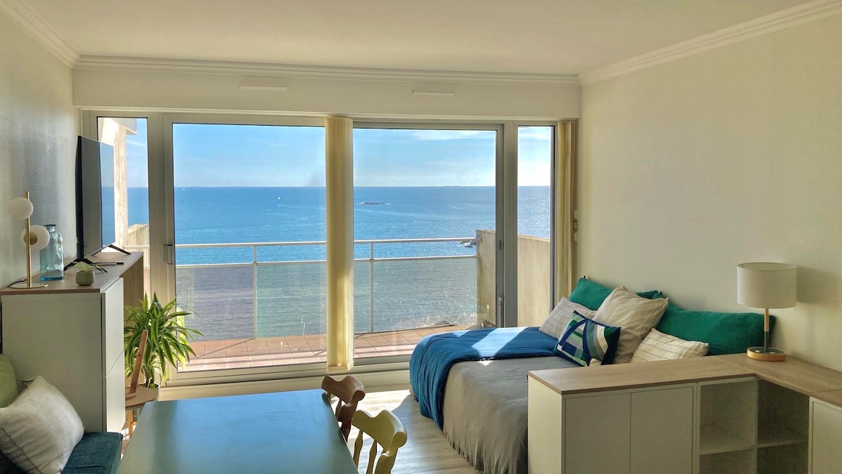 Velkommen til L'IROIZH, et 30kvm studio designet for å tilby deg en uforglemmelig opplevelse. Denne fredens oase ligger rett ved vannet i en rolig bolig med utsikt over Concarneaus vakreste strand, Les Sables Blancs. 180° havutsikt: nyt et eksklusivt panorama hver morgen. Sengetøy og håndklær er inkludert ☺️ Egen inngang / nøkkelboks Privat parkeringsplass foran boligen Svært raskt trådløst nettverk med fiber: Hold deg tilkoblet eller jobb hjemmefra