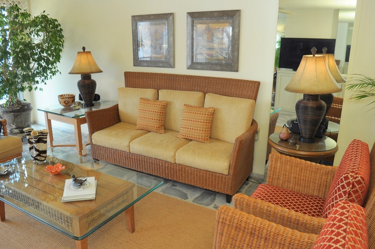 Nyt en opplevelse ved stranden med utsikt over Acapulco-bukten. Leilighet med to soverom og to bad med direkte tilgang til stranden (du trenger ikke å krysse noen gater), private bassenger og en snackbar. Beliggenheten er i det beste området, overfor Baby’O og innenfor gangavstand fra restauranter, barer og butikker. Romslig, komfortabelt og fullt utstyrt, ideelt for familier, ektepar eller langvarige opphold der man ønsker komfort, beliggenhet og stil.