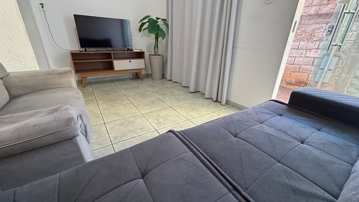 Romslig og godt utstyrt hus i kolonistil i et rolig nabolag i Conselheiro Lafaiete, bare ti minutters kjøretur fra sentrum. Ideell for forretningsreiser, fritidsopphold eller grupper. Har en privat garasje, en lukket hage og, for bedrifter, flere lagerbygninger og lukkede områder tilgjengelig for leie.