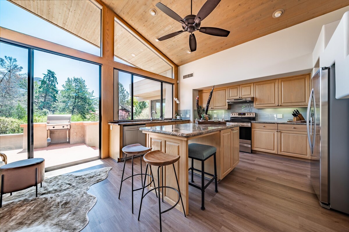 Opplev en uforglemmelig blanding av komfort og eleganse i hjertet av Sedona. Hjemmet vårt, som ligger i åssiden, gir enestående panoramautsikt over de ikoniske røde klippene, og tilbyr et fantastisk bakteppe under oppholdet. Beliggende mindre enn 1,5 km fra den sjarmerende shoppingmulighetene i Tlaquepaque, har du enkel tilgang til å utforske. Etter å ha fordypet deg i Sedonas naturlige underverk, kan du forynge i badekaret vårt, slik at den omkringliggende skjønnheten kan vaske bort bekymringene dine. TPT21331507-SP3256