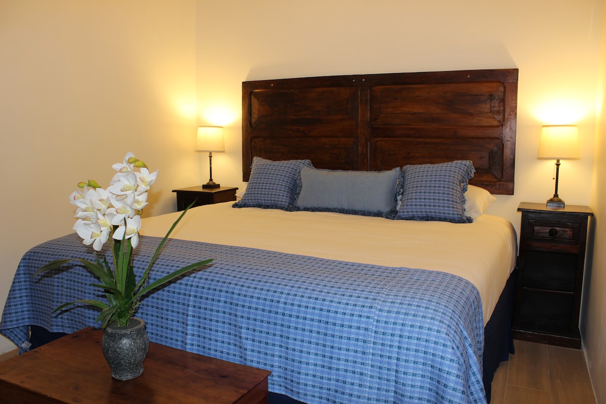 Unn deg luksus og ro i vårt romslige hus med tre soverom og fem og et halvt bad, som tilbyr fantastisk utsikt over vulkanen. Dette historiske 300 år gamle huset har plass til opptil 10 gjester, og har en spansk terrasse og hager både inne og ute. Kos deg ved peisen og nyt den unike opplevelsen, bare to kvartaler fra den sentrale parken og ett kvartal fra Mercado de Artesanias. En uforglemmelig ferie venter på deg – bestill oppholdet nå!