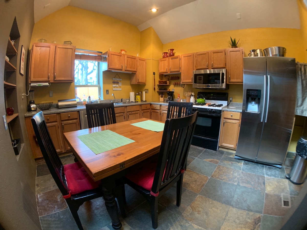 Utforsk Denvers kunstdistrikt, og klatre deretter opp ståltrappen til denne eklektiske loftsleiligheten hvor vintagesjarm møter steampunk-mote. Mønstrede fliser i portugisisk stil blander seg sømløst med et sofabord med flaskekork og industriell, elegant belysning. Dette stedet var et familieprosjekt (Steve, Lisa og Mick, som er brødre og en søster) – et vognskur bygget bak huset vårt fra 1900-tallet i nærheten av sentrum av Denver. Bygningen ble designet for å etterligne eldre arkitektur for å passe inn i det historiske nabolaget. Interiøret ble designet for å bære den vintage sjarmen innvendig med eksponert murstein og steam-punk armaturer og møbler for å blande vintage og industrielle designelementer. Vi designet og bygget strukturen, inkludert detaljer som den svarte rørlysekronen, trappen i stål og funky skap på badet og soverommene. Håndlagde gjenstander og samlinger fra familien vår vises rundt i huset. Vognhuset er eksklusivt for gjester, så alt du ser er tilgjengelig, inkludert mat og drikke. Så mye eller så lite som gjestene ønsker. Vi hjelper deg med å svare på eventuelle spørsmål om nabolaget og hvor du kan spise og drikke. Historiske Curtis Park ligger mellom to kommersielle korridorer: Welton og Larimer (RiNo). Det er mange restauranter, håndverksbryggerier, vingårder, ciderier og apoteker i nærheten. Ta A-toget fra DIA til Blake og 38th Station. Derfra er det 12 minutters gange eller en kort Uber/Lyft-tur. B-Cycle-stasjon i nærheten på 33rd og Araopahoe. Jeg er ny på dette, men broren min Mick er vertskap for «1880s Carriage House» over gaten, som er Colorados Airbnb nummer én, så jeg får vertskapstips fra ham.