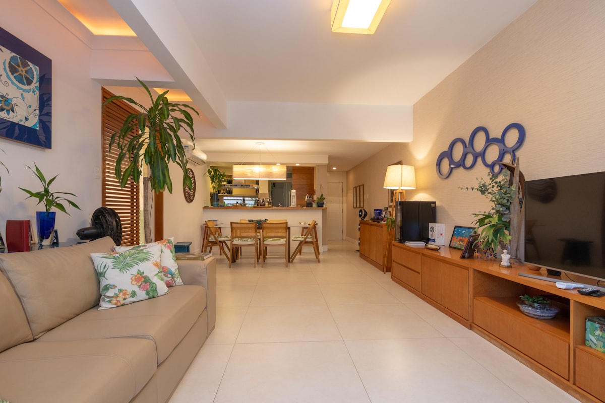 Sjarmerende tre-roms leilighet med en glassinnelukket balkong i hjertet av Leblon. Ideelt for dem som søker komfort, funksjonalitet og en førsteklasses beliggenhet. Med 130 m² velutformet boareal har leiligheten tre suiter – hvorav én kan gjøres om til et hjemmekontor, som allerede er utstyrt med en sovesofa. Den romslige stuen er fylt med naturlig lys og åpner seg mot en stor balkong med en frodig grønn utsikt, noe som skaper en fredelig og innbydende atmosfære.