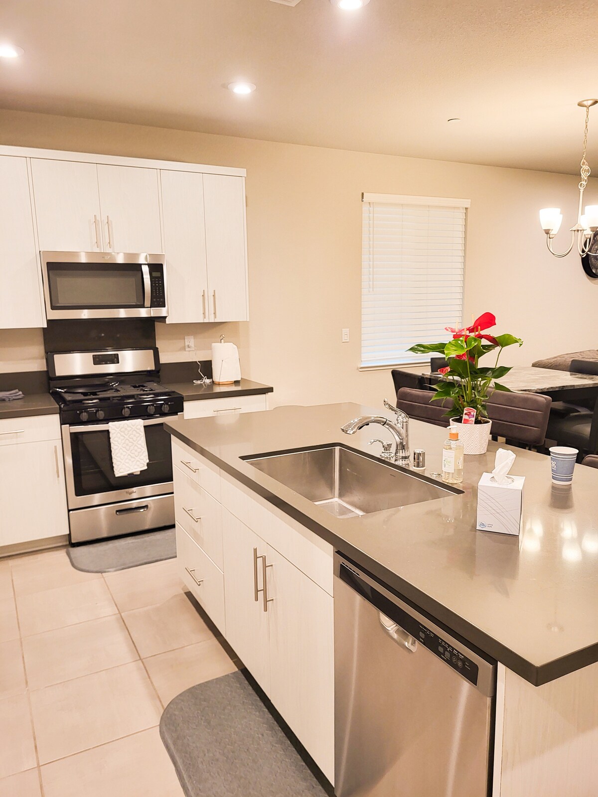 Beskjeden, sjarmerende, ettetasjes, 4 soverom/2 ba, 1400 kvm hjem som er stilig og komfortabelt. Den har et fullt utstyrt, oppdatert kjøkken med benkeplater i svart granitt og apparater i rustfritt stål. Det er også tildekket uteservering, grill og et stort treningsrom med vektmaskin, tredemølle og mer. Eiendommen er fullt inngjerdet med automatisk 4 fot høy svart jerngjerde, overvåkningskameraer og en husalarm. **VENNLIGST LES NØYE NEDENFOR om dette nabolaget før du leier!!**