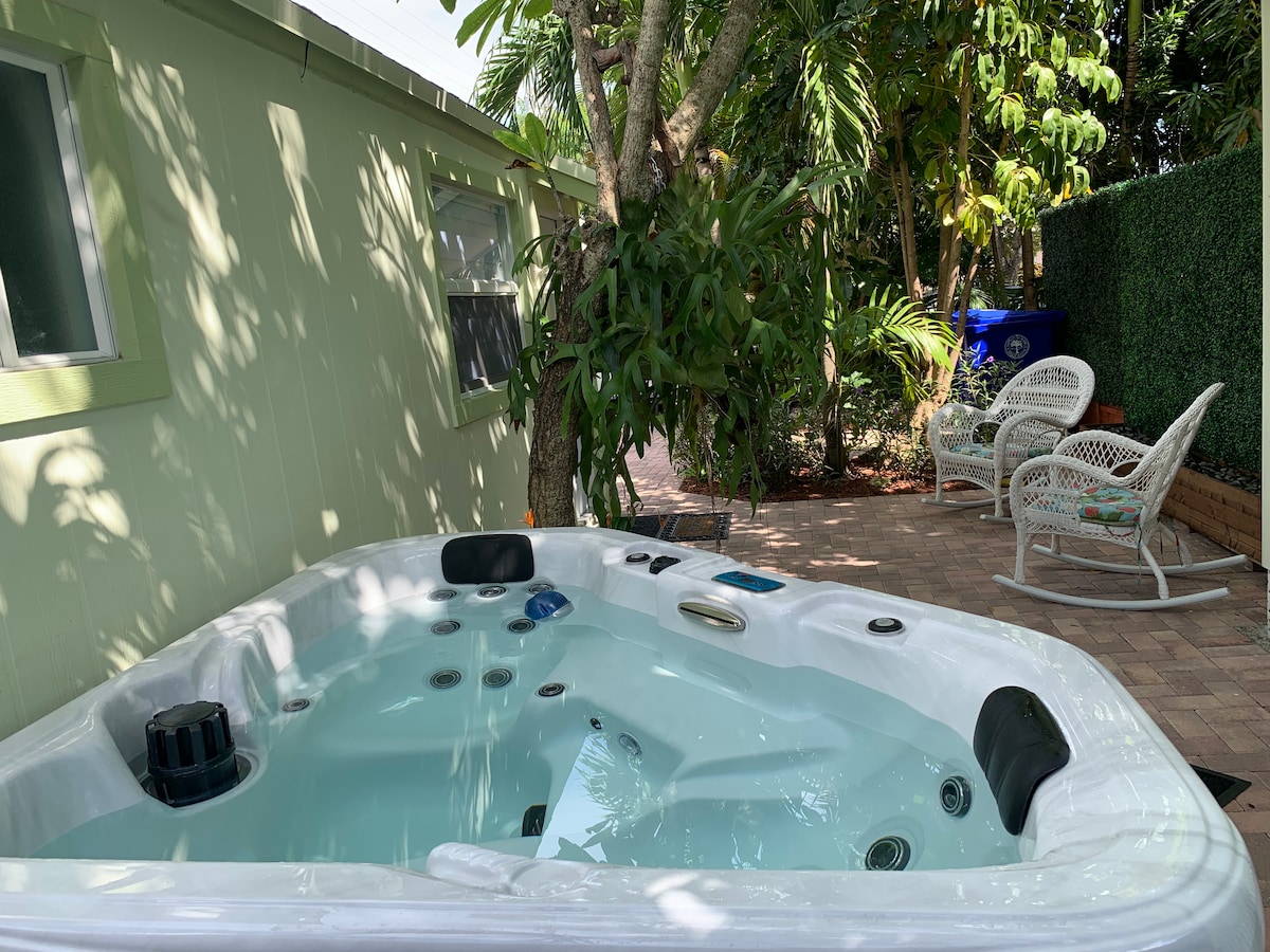 "Romantisk hytte i førsteklasses beliggenhet" Reis til denne sjarmerende og private romantiske hytta, ideell for en utflukt for et par. Slapp av i din egen private jacuzzi, slapp av på en vakker avsidesliggende terrasse, og nyt bekvemmeligheten av gratis privat parkering. Perfekt plassert mellom Coral Way og Coral Gables, du er bare minutter fra Miami International Airport, University of Miami, Downtown Miami, og bare 20 minutter fra South Beach. Nyt fullstendig privatliv, komfort og renhold i en velholdt .