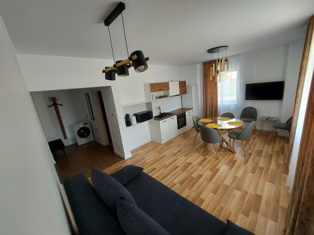 🏡 GoldenLux Apartment – Elegance and comfort in Oradea! Oppdag en moderne leilighet med gylne detaljer, perfekt for å slappe av og utforske byen. Rask ✅ trådløst nettverk og Netflix. ✅ Fullt utstyrt kjøkken. Innsjekking uten ✅ vert døgnet rundt Flott ✅ beliggenhet – i nærheten av sentrum, shopping og Aqua Park Nymphaea Ideelt for turister, forretningsreiser eller romantiske ferier. Bestill nå og nyt et førsteklasses opphold!