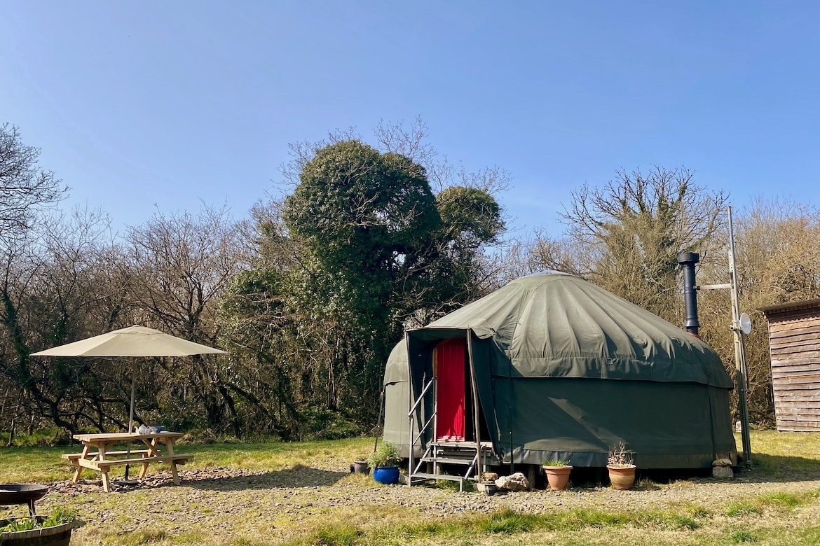 Fire vakre jurter på et fantastisk sted i nærheten av National Trust-strendene. De er møblert med antikke messing- og jernsenger og fjærdyner og skreddersydde sengetøy og 2/3 enkle futoner. Hver jurt har sitt eget kjøkken og bruk av vårt vilde spaområde med vedfyrt boblebad og badstue, stor rustikk lekelåve med badminton, bordtennis osv. Jurtene er godt fordelt fra hverandre, med bålplass og hengekøye. Barn kan hjelpe oss med å mate dyrene og samle inn ferske egg til frokost.