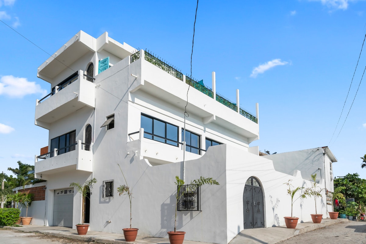 Nyt en stilig opplevelse på denne sentralt beliggende studiosuiten med enkel tilgang til stranden! (Tre minutters gange) Tilbyr én kingsize-seng eller to enkeltsenger. Kjøkkenkrok godt utstyrt for alle matlagingsbehovene dine. Se vakre Mita-solnedganger fra balkongen din i andre etasje! Romslig toalettområde, stor dusj med steinbunn. Tacostander til restauranter, alt innenfor en kort spasertur. Du kommer til å elske det komfortable oppholdet ditt her! Surfebrett, golfbil eller padlebrett kan også leies, spør gjerne. 😉