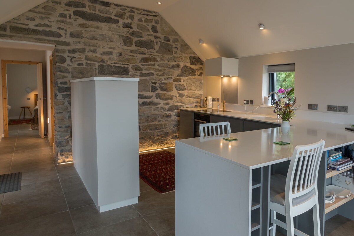 The Bay er en stilig leilighet med ett soverom som ligger noen meter fra kysten i utkanten av Broadford Bay. Den har et fullt utstyrt kjøkken/stue i åpen planløsning som åpner seg mot et privat terrasseområde. Kjøkkenet har en kokeplate, stekeovn og mikrobølgeovn, et kjøleskap under benken med en liten isboks. Selv om den er tilknyttet hovedhuset, har den egen privat inngang og parkering. Soverommet har en kingsize-seng med luksuriøst sengetøy i lin, og badet har en sjenerøs størrelse og dusj med regndusj.