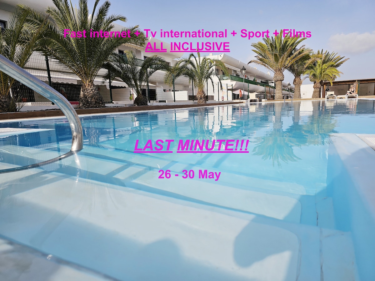 Leiligheten for eksklusiv bruk ligger i Corralejo i et boligkompleks med svømmebasseng og solarium. Den grenser til "Parque Natural de Corralejo" og ligger ca. 400 meter fra den berømte "Grandes Playas" og "Dunas de Corralejo". Innkvarteringen består av soverom, stue med kjøkkenkrok, bad og stor terrasse. Superraskt trådløst internett med fibertilkobling og sengetøy er inkludert i leieprisen. Gratis parkering er tilgjengelig.