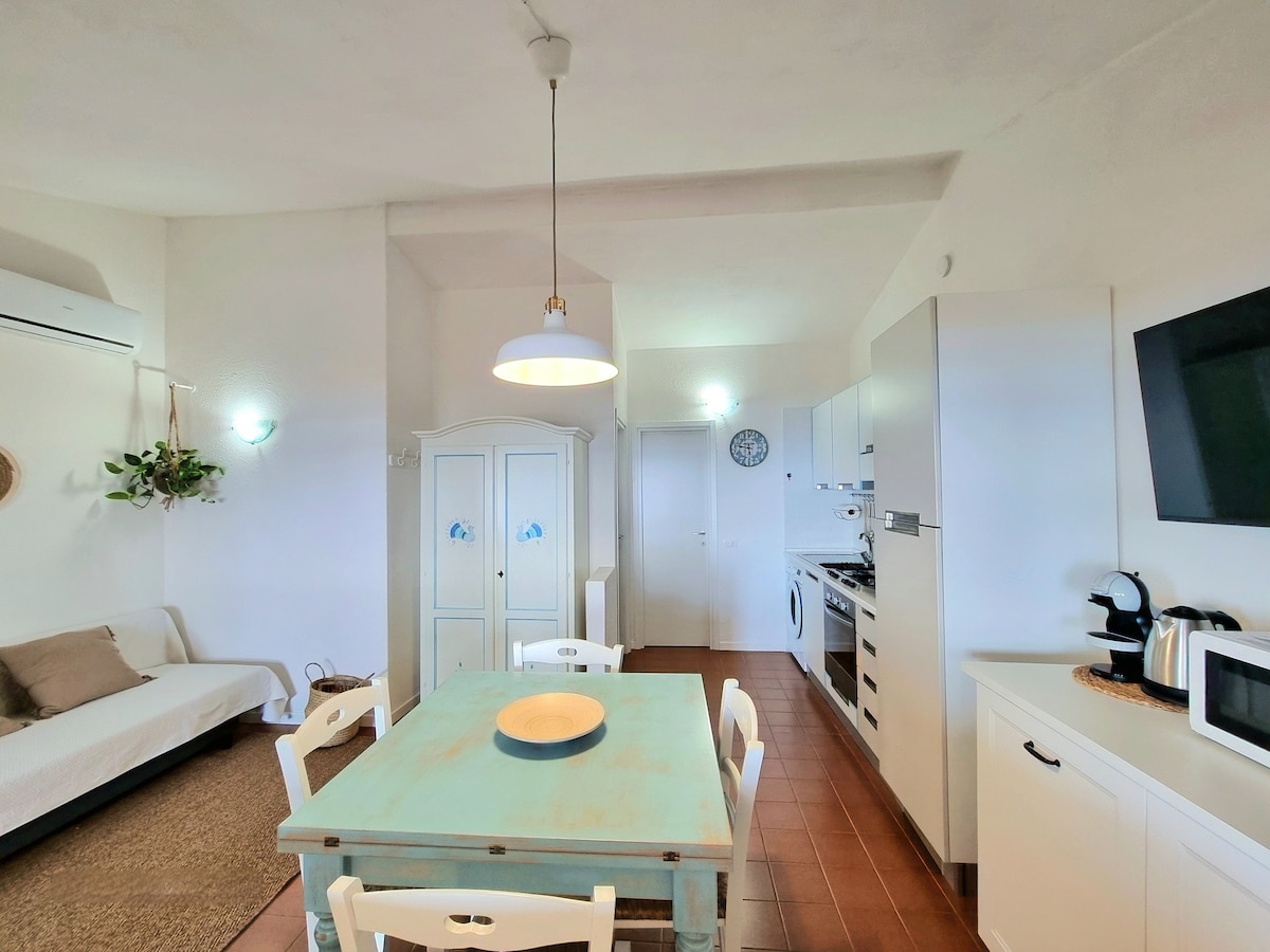 Helt nyoppusset villa, to skritt fra stranden, svært nær alle tjenester: marked, apotek, restauranter, pizzeria, baker, bar, fiskebutikk, osv. utstyrt med alt og litt til, med veranda foran og bak, grill og en ekstra utedusj med varmt vann. Nyinnredet i sardinsk stil. ligger i et rolig og stille privat kondominium, med en trærrik hage og privat parkeringsplass..........................................................................