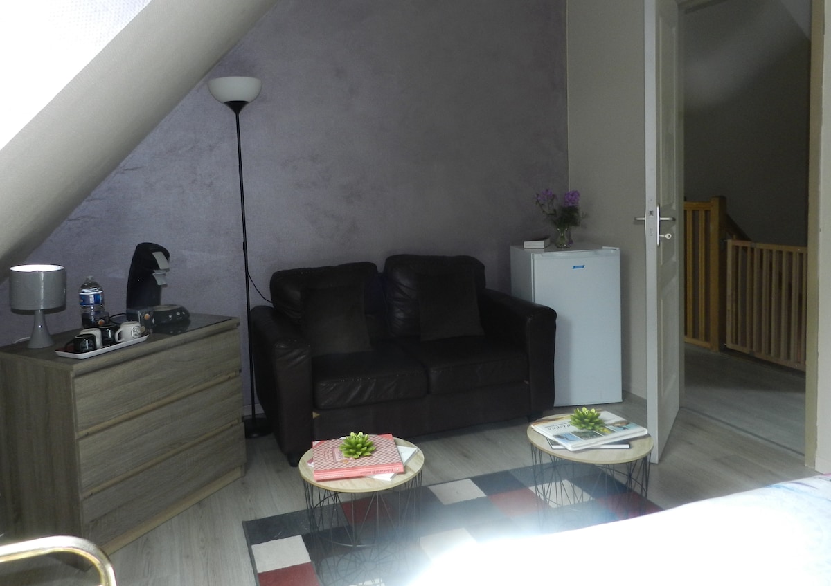 For en total forandring og et rolig opphold i sentrum av den historiske byen Bayeux, tilbyr jeg en STOR privat FORELDRESUITE på 40m2 med et bad med dusj, badekar og toalett. Du kan nyte den solfylte terrassen når som helst på dagen. STOR FORDEL: - -FRISTÅENDE FROKOST INKLUDERT I ROM- OG PARKERINGSPRIS foran HUSET