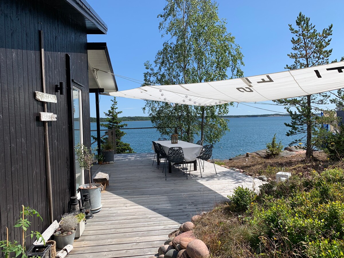 Velkommen til vår moderne hytte ved sjøen. Her finner du alt du trenger for et rolig og avslappende opphold. Hytta, ca. 50 m2, har et velutstyrt kjøkken/stue, et lite soverom med 160 cm dobbeltseng, romslig bad med toalett og dusj, samt badstue og boblebad. Sol fra morgen til kveld og fin utsikt over stranden og havet. Private, sjenerøse og oppholdsvennlige balkonger strekker seg rundt hytta. Du har fri tilgang til stranden og bryggen med badestige. Hytta ligger ca. 5 km fra Mariehamn.