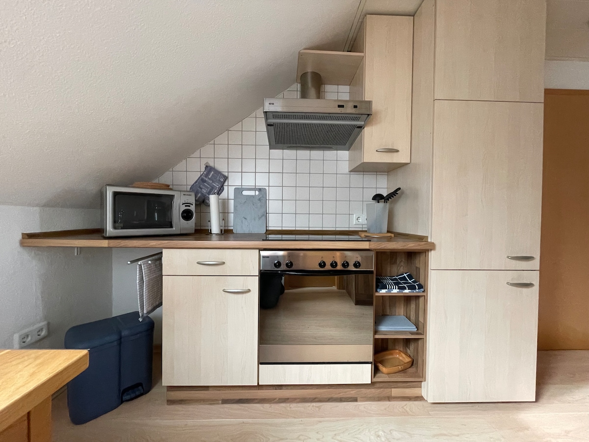 Velkommen til gården vår midt i naturen. Leiligheten vår har en spesiell sjarm i en gammel mur, men er på innsiden som en nybygg. Alt er innredet i en koselig landlig stil. Et kjøkken med to kokeplater, vask, minibakeovn, kontaktgrill, kjøleskap, kaffemaskin og vannkoker tilbyr alt du trenger. Sengetøy, håndklær osv. er tilgjengelig. Ankomst med bil anbefales, da nærmeste bussholdeplass ligger 1,3 km unna.