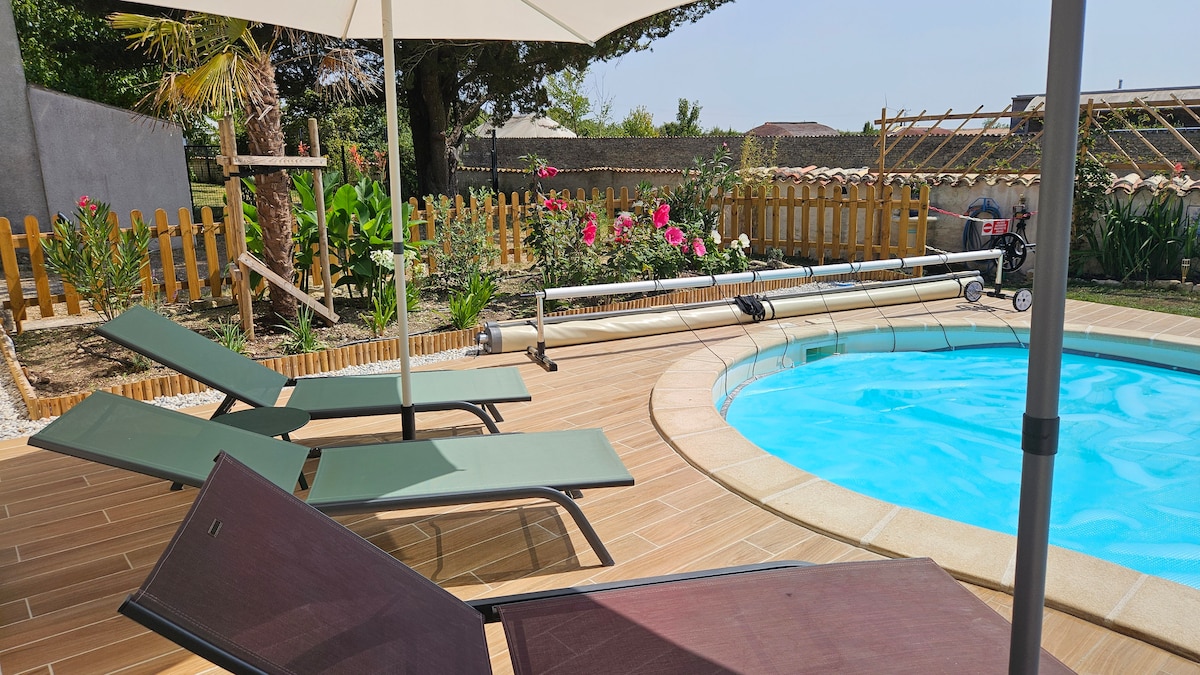 Ekte Charente-hus, tidligere sjarmerende og smakfullt renovert gjestehus. Vurdert til 5** * * , Gite Hermione, blir raskt feriehjemmet ditt. Ideell beliggenhet på landet ikke langt fra La Rochelle, Rochefort og Marais Poitevin, vil de private og vakkert skogkledde hagene, svømmebassenget og solariet samt badstuen og petanque-spillet få deg til å tilbringe et eksepsjonelt opphold.